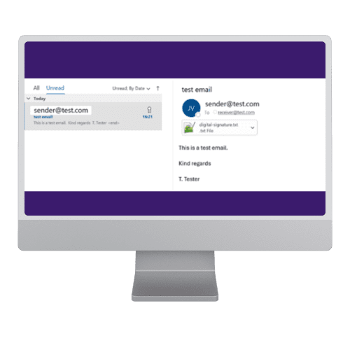 De ontvanger ontvangt een e-mail met een unieke, versleutelde downloadlink. Na verificatie kan diegene de bestanden veilig openen en downloaden, zonder software te installeren of een account aan te maken.